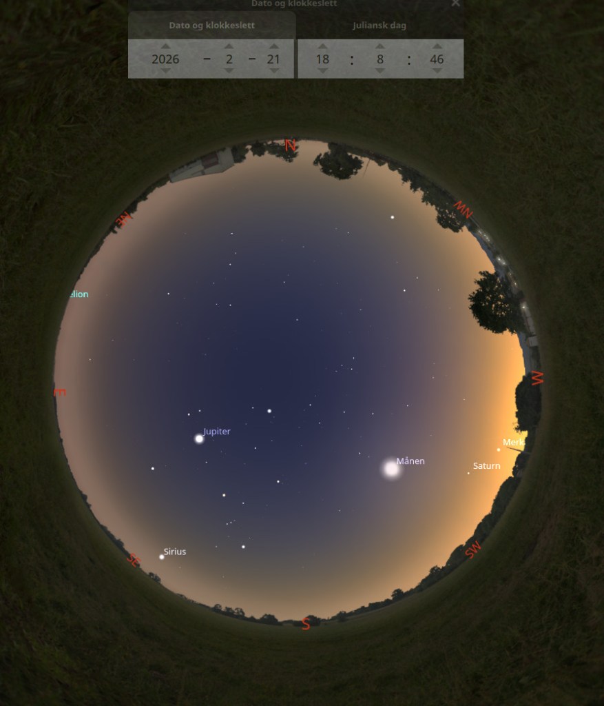 Egentlig er det bare Jupiter å se i natten nå i februar, og såvidt Saturn og Merkur ved solnedgang.